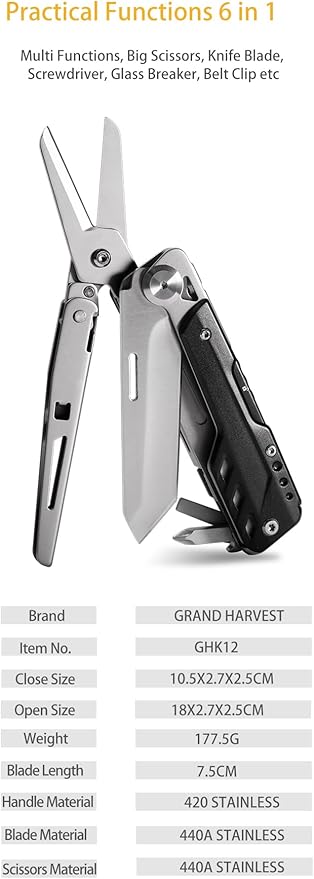- Multipurpose Tools: The GHK12 Multitool includes a variety of tools, making it suitable for a wide range of tasks. It is perfect for camping, hiking, outdoor adventures, and everyday use.
