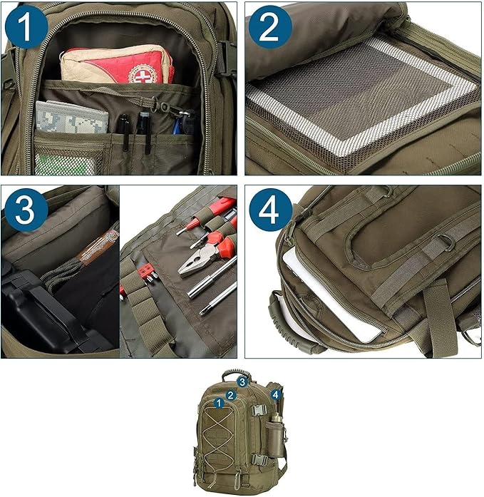 - ✅ Effective: There's plenty of compartments to store and organize your life. The pack holds 3 days worth of clothes along with toiletries and other essential gear. A solid multifunctional backpack for combat, range, survival or hunting. It is water resistant keeping everything dry in a storm.