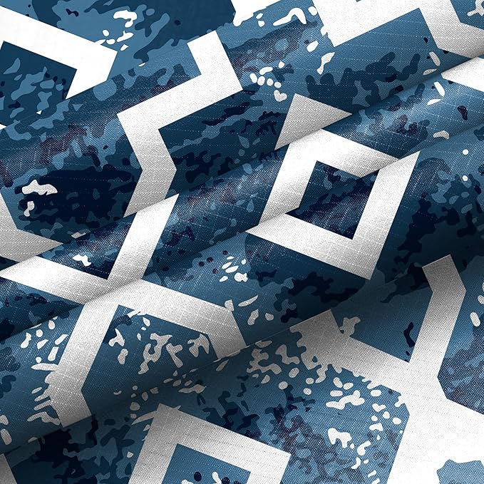 - Eye Catching Boho Moroccan Design: Dyed the blue of the summer sea, our navy geometry moroccan beach blanket elevates your beach experience. Freeform loops, ivory lines and latticework pattern in white on a deeply saturated, subtle wash of teal.