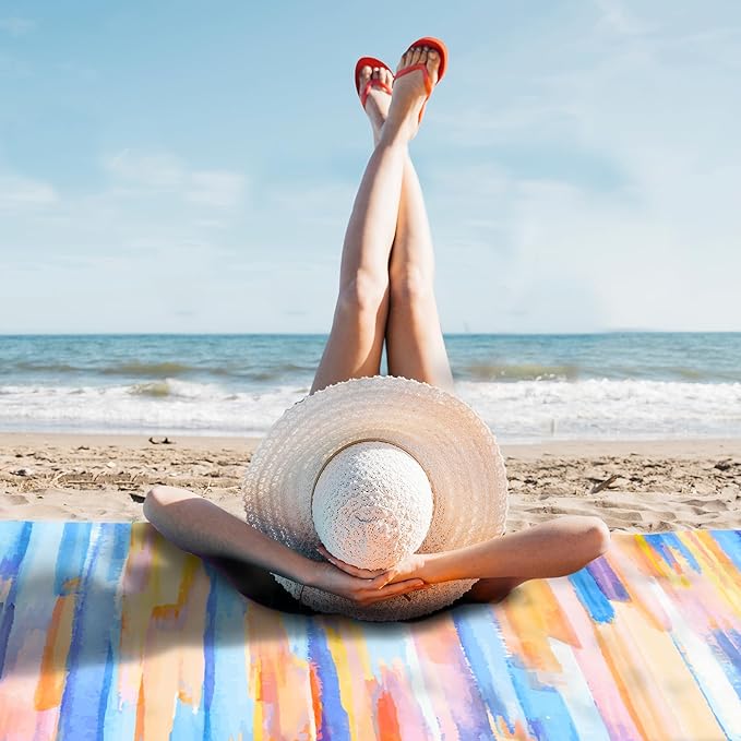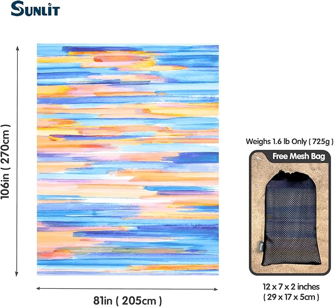 - [ Eye-Catching Design ] - The uniquely designed beach blanket from Sunlit will make you stand out on the beach! You can also use it as a photo backdrop, perfect for selfies and posts on Instagram, Facebook, Snapchat, Twitter, and YouTube.