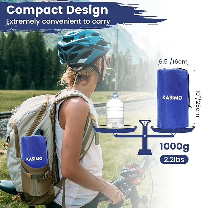 - 🌜6" Thickness & Ultra Wide Camping Sleeping Pad🌛 KASIMO sleeping mat could inflate to size 79" X 26" X 6", wider and thicker than other camping sleeping mat on the market. It could keep your body away from the uneven ground and hard rocks, ensuring maximum comfort, give you the newest experience, great camping essentials
