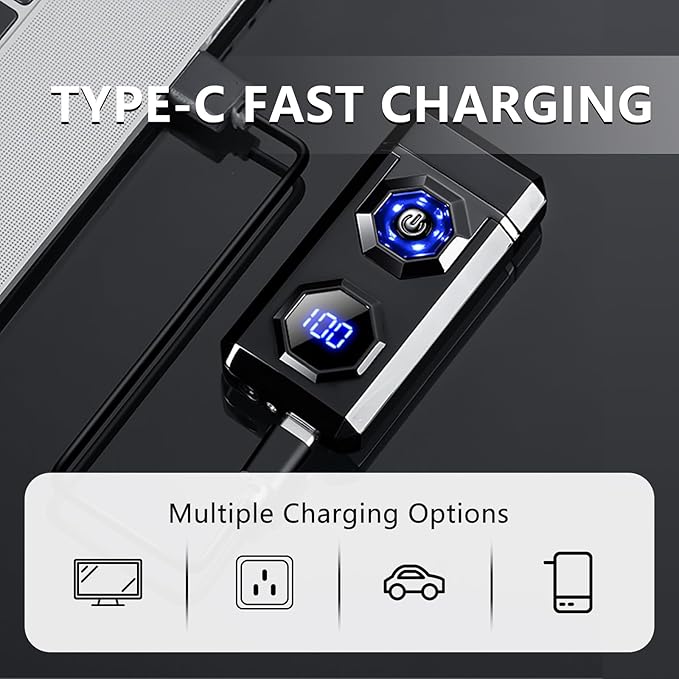 - 🔥[Type-C Rechargeable] - Upgraded charging method, the rechargeable lighter can be fast-charged with the included Type-C charging cable, which can be connected to computers, mobile power, sockets, etc. at any time for charging, charging in a variety of ways to make it more convenient to use, and the electronic lighter does not need to be filled with butane/gasoline, which is environmentally friendly and durable.