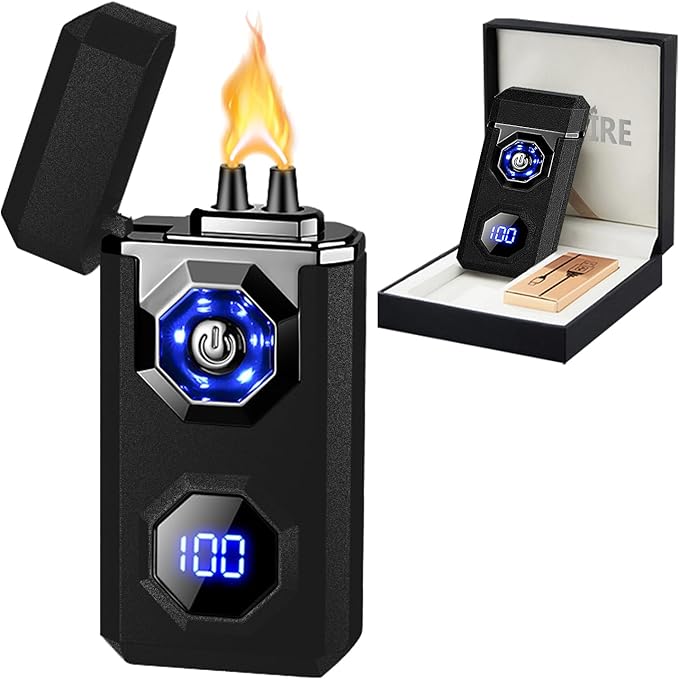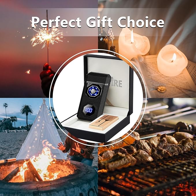 - 🔥[2 Display Modes] - The LED display in the center of the electric lighter shows the number of times the plasma lighter has been lit by pressing the switch when the lid is closed, and shows the remaining battery level when the lid is open, which is convenient for you to observe the battery level at anytime and anywhere, avoiding the usb lighter suddenly running out of battery when you are using it outside, and making it more comfortable to use.