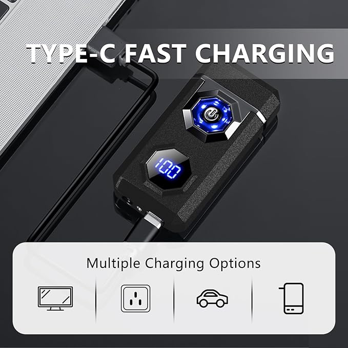 - 🔥[Type-C Rechargeable] - Upgraded charging method, the rechargeable lighter can be fast-charged with the included Type-C charging cable, which can be connected to computers, mobile power, sockets, etc. at any time for charging, charging in a variety of ways to make it more convenient to use, and the electronic lighter does not need to be filled with butane/gasoline, which is environmentally friendly and durable.