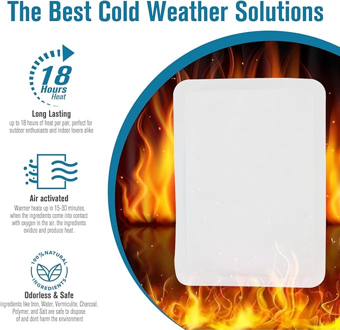 - ☀18 HOURS OF COMFORTABLE WARMTH - Our body and hand warmers are odorless and environmentally safe. It provides a constant heat source that warms and comforts in cold conditions for up to 18 hours.