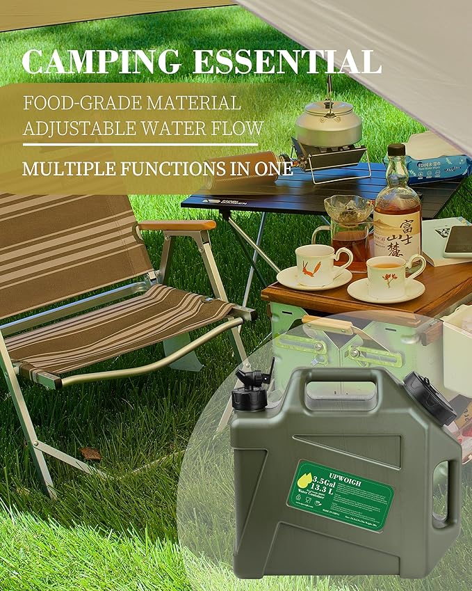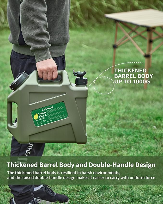 - Ample Capacity: Holding up to 3.5 gallons of water, this jug ensures an abundant water supply for your outdoor excursions. Ideal for camping, overlanding, hiking, or RV trips, it provides enough water to sustain you and your companions throughout your journey.