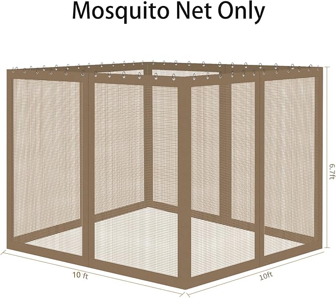 Gazebo Universal Replacement Mosquito Netting, 10' x 10' Outdoor Mesh Netting Screen 4-Panel Sidewall with Zipper for Patio, Canopy, Garden and Backyard, Khaki(Mosquito Net Only)