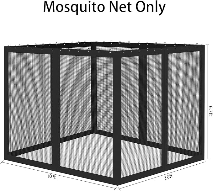 - Specification: Our replacement mosquito net is suitable for most 10' x 10' gazebos. Netting only; metal frame and canopy not included! Please confirm the gazebo model before placing an order. Rings: 1.6*2.0 inch