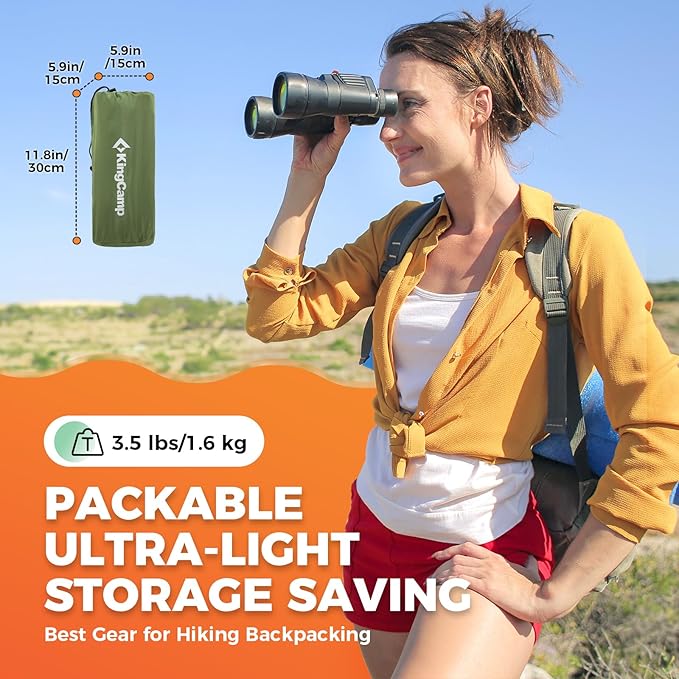 - 【PERFECT SIZE】Our double camping sleeping pad is roomy enough for two people with an inflated size of 75.6" x 49.2" x 3.5" and a pillow thickness of 6.3" for optimal support. It's easy to carry when folded (only 11.8"x5.9") and weighs just 3.5 lbs, making it perfect for all your outdoor activities.