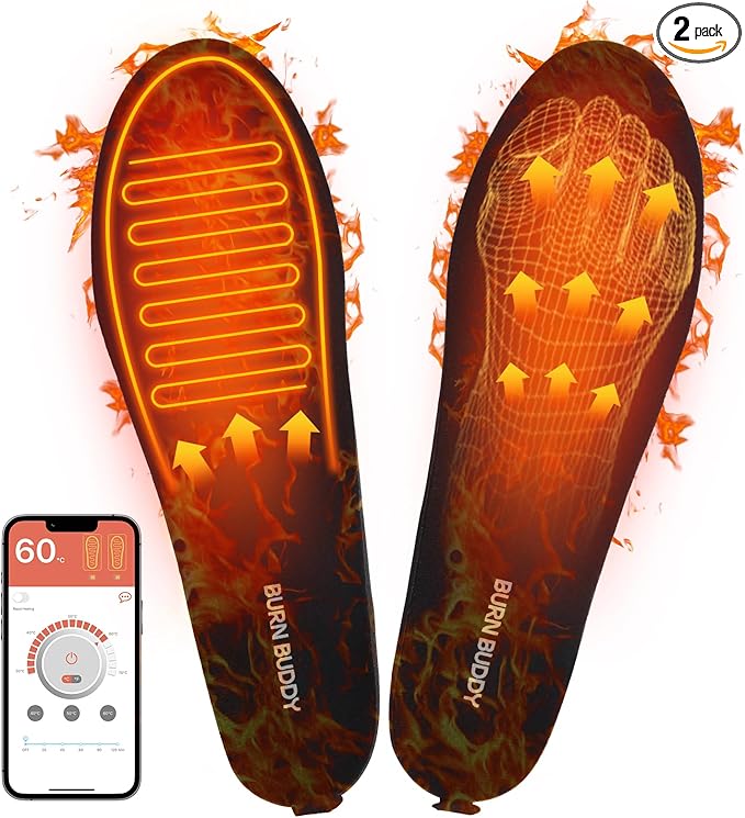 Heated Insoles, APP Control Heated Insoles for Women Men, 5000mAh Rechargeable Foot Toe Warmer Insoles, Electric Heated Shoes Insoles for Hiking Camping Skiing Hunting Outdoor Work, Thermal Insoles