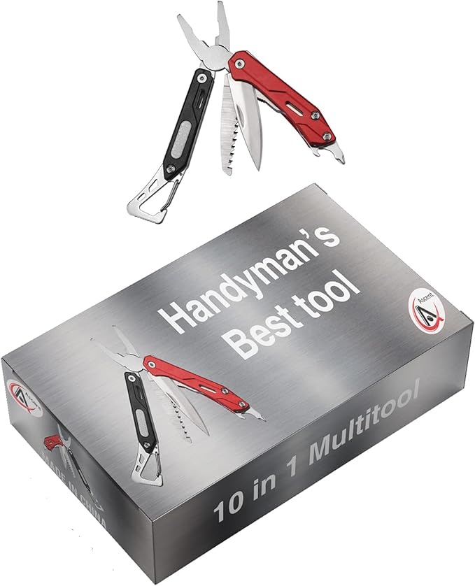 Ascent Handyman DIY Gift Tool 10 in 1 Pocket Size Multitool Gift Boxed, Handy Key Ring Holder Bottle Opener Saw For Camping Fishing Hiking Hunting - Gift Idea for Father, Men, Boyfriend, Women
