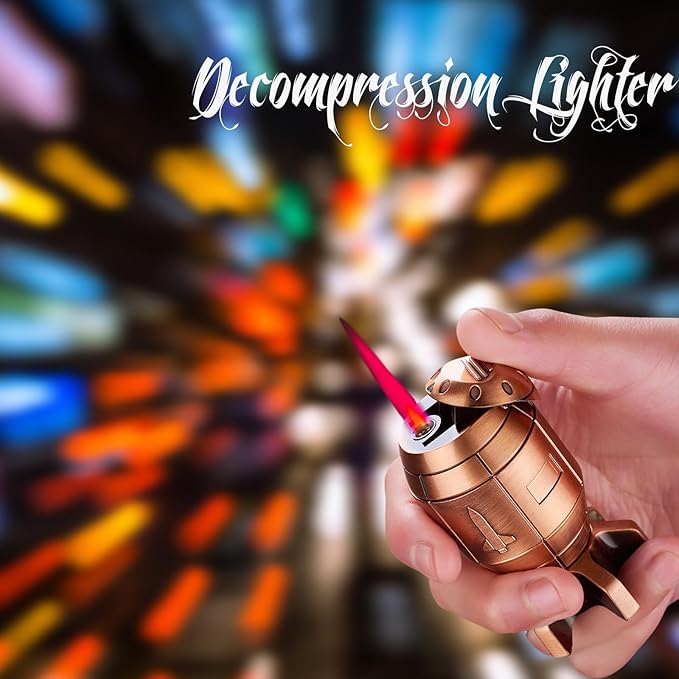 - Unique Lighter - This Desktop Cool Torch Lighter Is Made Of High Quality Alloy Material,Brushed Craftsmanship,Plus Electroplating And Polishing,All These Processes Make This Lighter Strong,Wear-Resistant,High Temperature Resistant Base Can Be Rotated,Adding More Fun To Your Ignition And Leisure Time.