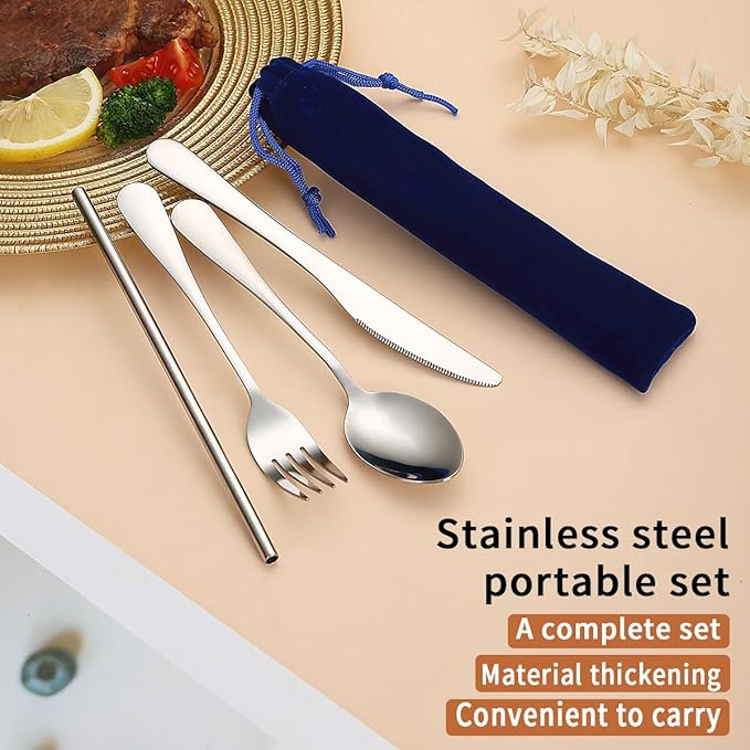 Kyraton Portable Flatware, Reusable Camping Flatware, Bento Box Flatware, Silverware For School/Work/Office/Outdoor, Dishwasher Safe, Set of 4 Pieces