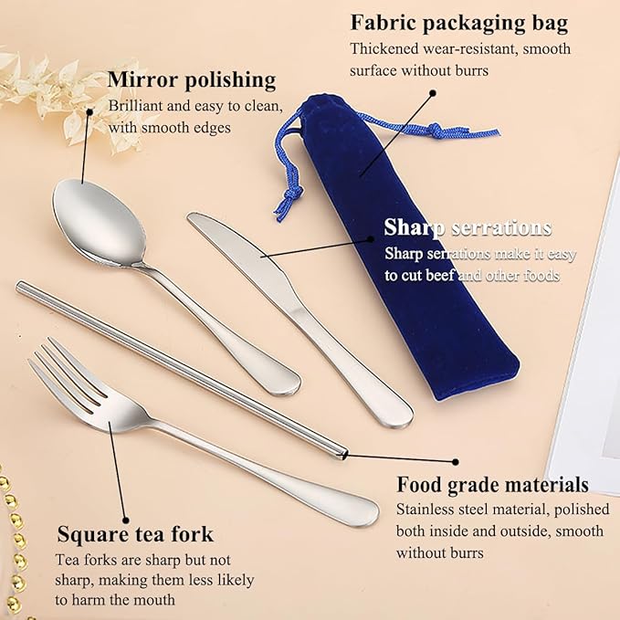 - Material safety: The cutlery set are made of high quality food grade stainless steel. Mirror finished surface and ergonomic shape, reusable and durable for daily use. Easy to clean, dishwasher safe.