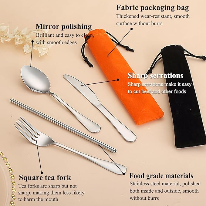- Material safety: The cutlery set are made of high quality food grade stainless steel. Mirror finished surface and ergonomic shape, reusable and durable for daily use. Easy to clean, dishwasher safe.