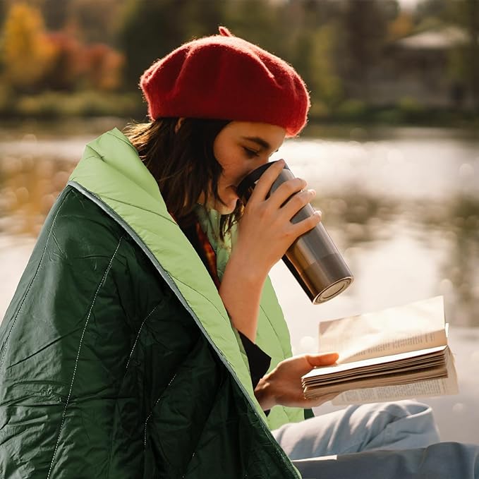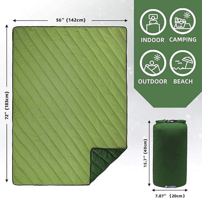 - 【ULTRALIGHT & PORTABLE】Our outdoor blanket could be folded and packed into a bag, this extra-light blanket weights 1.18kg only, then you can hold it in one hand, and fasten up the string so that the blanket won’t drop out. It’s suitable for climbing, hiking, traveling, camping, stadium, backpacking, concert, beach trips, etc.