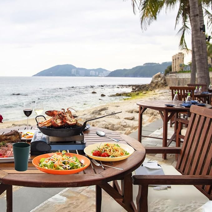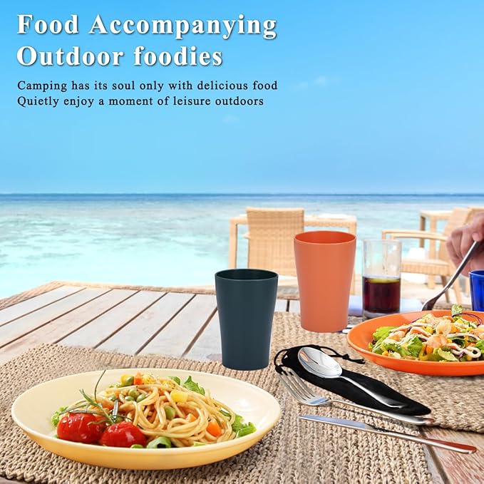- HIGH QUALITY: The plates and cups of this camping set are made of pp material, BPA free, non-toxic and odourless. They are lightweight, unbreakable and sturdy, the stainless steel cutlery is made of high quality stainless steel, sturdy and durable.