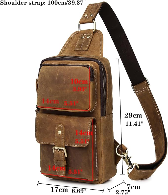 - 【Multipurpose use】: This stylish sling bag can used as a chest bag, single shoulder bag, crossbody backpack, shoulder backpack, Daypack, travel bag, business leather bag, outdoor bag, fit very well for adult men or women. perfect for outdoor, travel, vacation, camping, hunting, hiking, fishing, shopping, and work.Perfect Gift for Christmas, New Year, Thanks Giving Day, Groomsmen, Birthdays, Father's Day, Valentines Day, and other Special Occasion.