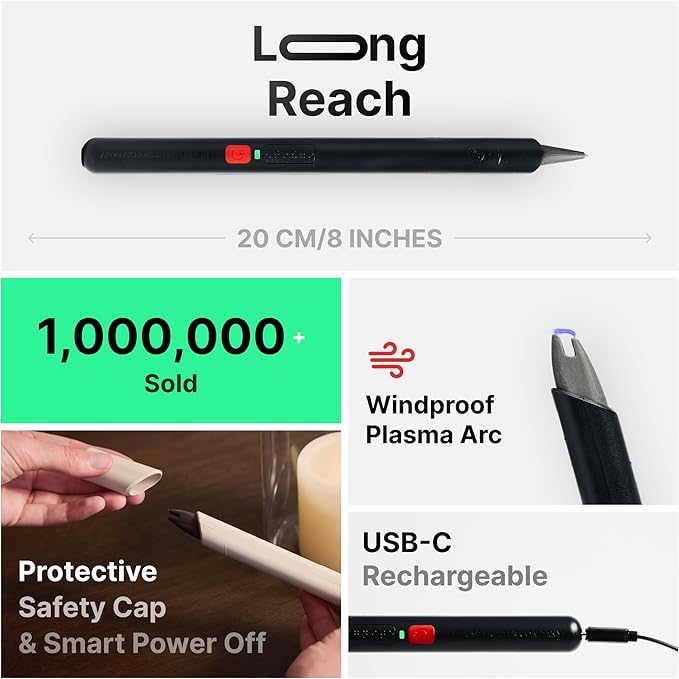 - UNSTOPPABLE FLAME, ANYTIME, ANYWHERE - Flameless plasma arc technology is easy to turn on and windproof for a reliable light regardless of the conditions. Use it for candles, gas stoves, grills, fire pits, birthday candles, camping, RVing, and incense burning.