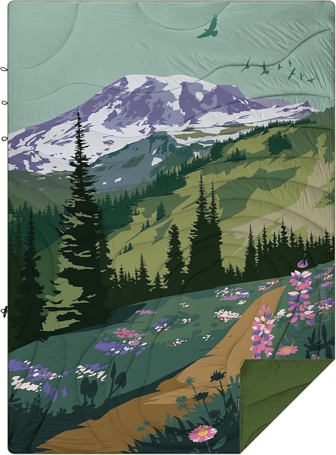 - 【LARGER & WAMER】Size 56 IN x 72 IN Larger than normal single puffy blanket, with rip-stop polyester outside and cotton interior, which means good water resistance and keeps warm better.