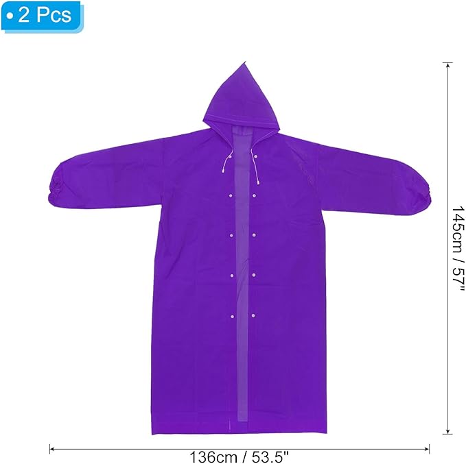 - Color: Purple; Size: 145 x 136cm / 57 x 53.5 inch (L*W); Packing List: 2 x Rain Ponchos