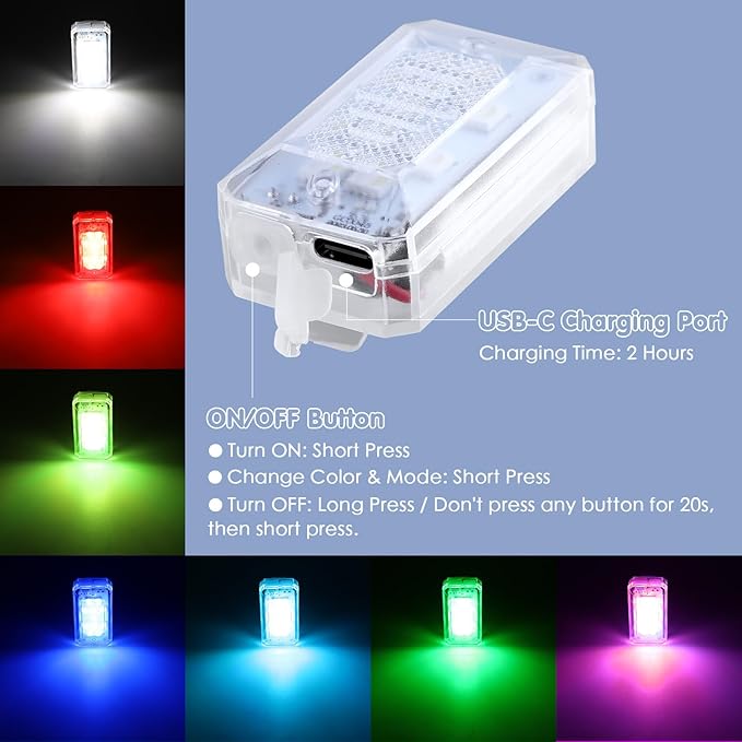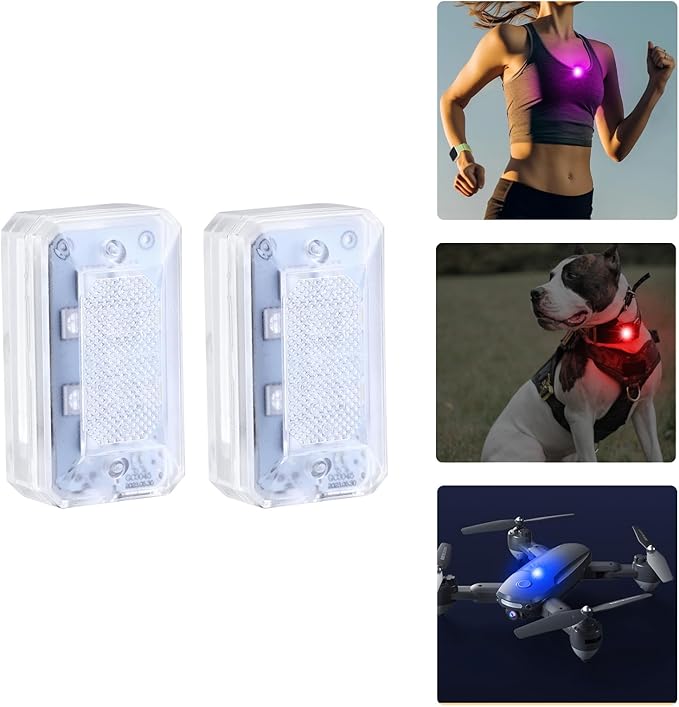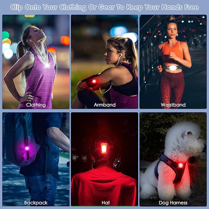 - Two Installation Methods For Versatility: The clip of LED running light is deep and has teeth to grip just the right amount and stay in place even while running, easy on vests, belts, collars, pockets, headbands, hats, dog harnesses, etc.The adhesive base holder makes it versatile as attached to helmets, drones, car footwells, cabinets, bicycles, motorcycles, and other smooth surfaces.