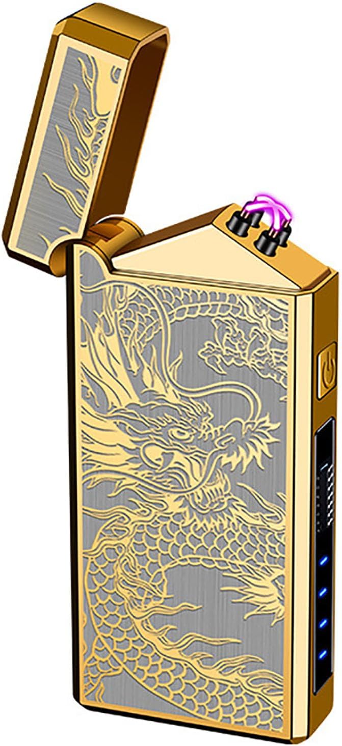 Electric Lighter, Windproof USB Rechargeable Flameless Dual Arc Lighter, Pocket Metal Lighter with LED Battery Indication for Candles, Incense, Fireworks, Camping(Gold)