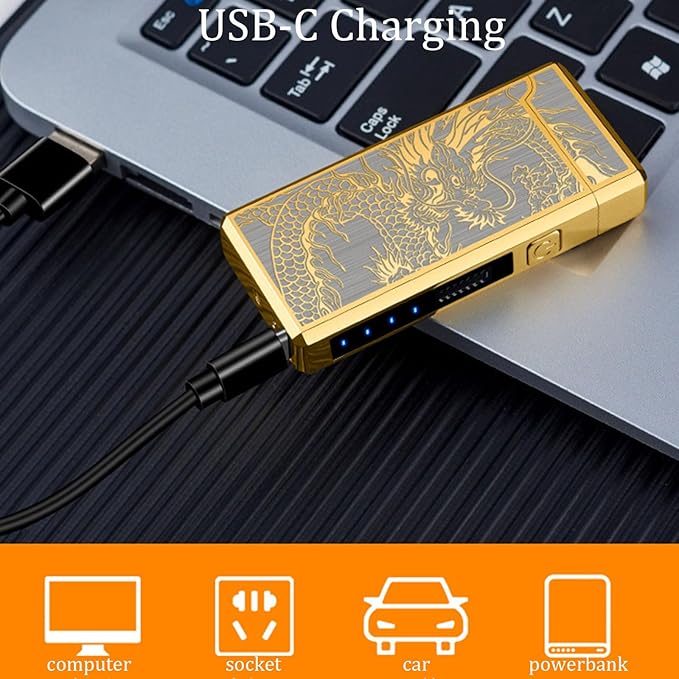 - 【USB Rechargable Lighter】We can charge this flameless lighter through usb-c cable with laptop, socket, car usb, powerbank etc, so it can be taken out almost everywhere without worry.
