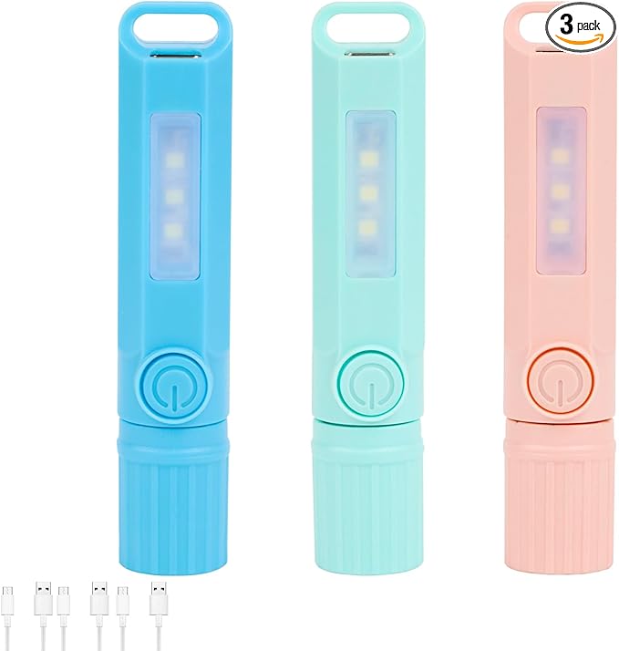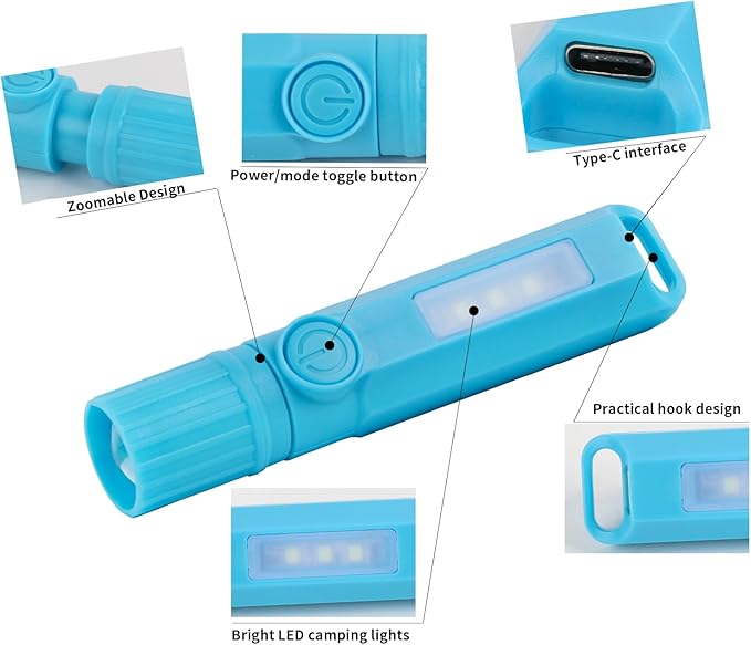 3 Pack Rechargeable Flashlights USB C Mini LED Flashlights, Camping Lantern Combo Flashlight, Ultralight Zoomable Flashlights, for Kids Gift, Camping, Hiking, Night Reading etc (3 Pack)