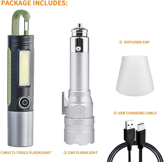 - [2 in 1 Flashlight] Attached the diffuser cap, the flashlight is evenly softened for larger lighting and can be used as a work light. Provides 500 lumens to light up the dark and night.
