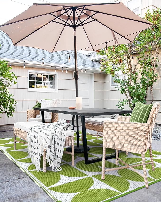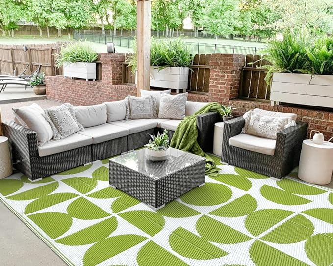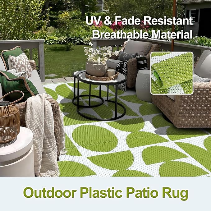 - 【UV-Protected & Reliable】-- Made from recycled plastic, this outdoor rug is finished with a UV-resistant coating that prevents fading and keeps colors vibrant. Reinforced edges ensure durability against heavy foot traffic and harsh weather conditions.