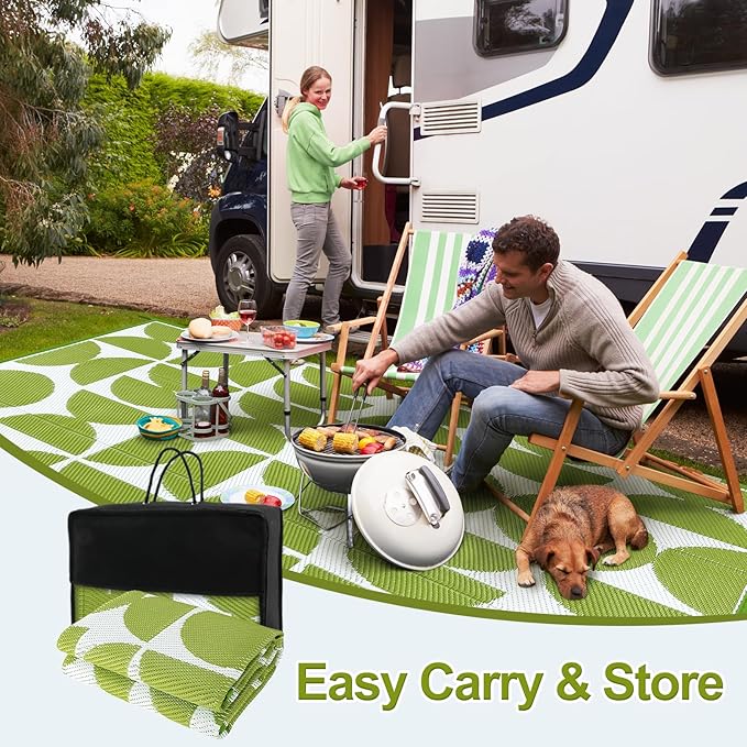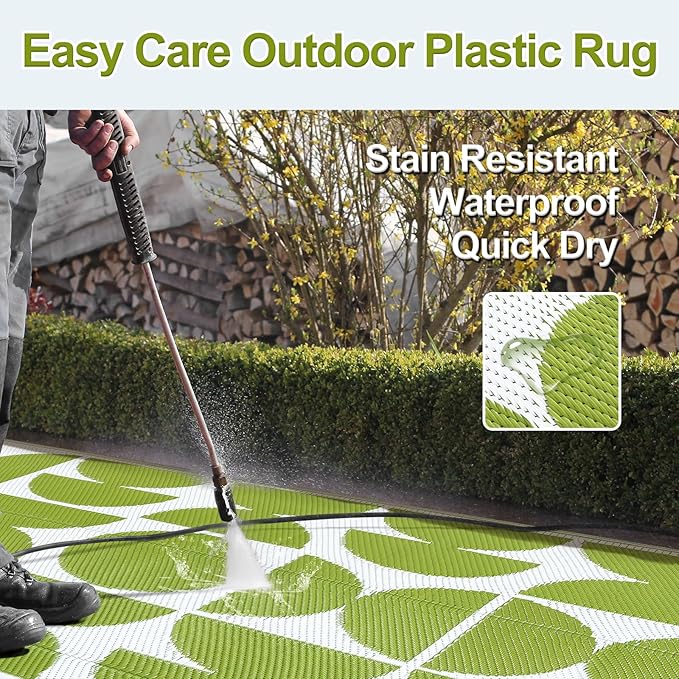 - 【Stain Resistant & Easy Care】-- This outdoor rug is incredibly convenient to maintain—not only does the plastic repel spills and dirt, but it's also easy to wipe away messes or simply hose the rug down. The material is fast-drying, you can enjoy outdoor activities without any hassle.