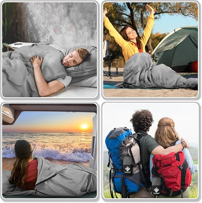 Sleeping Bag Liner, Sleep Sack Travel Sheets, Two-Way-Zipper Expose Feet Separately, Portable Single Camping Sheet for Hotel,Hostels,Business Trips