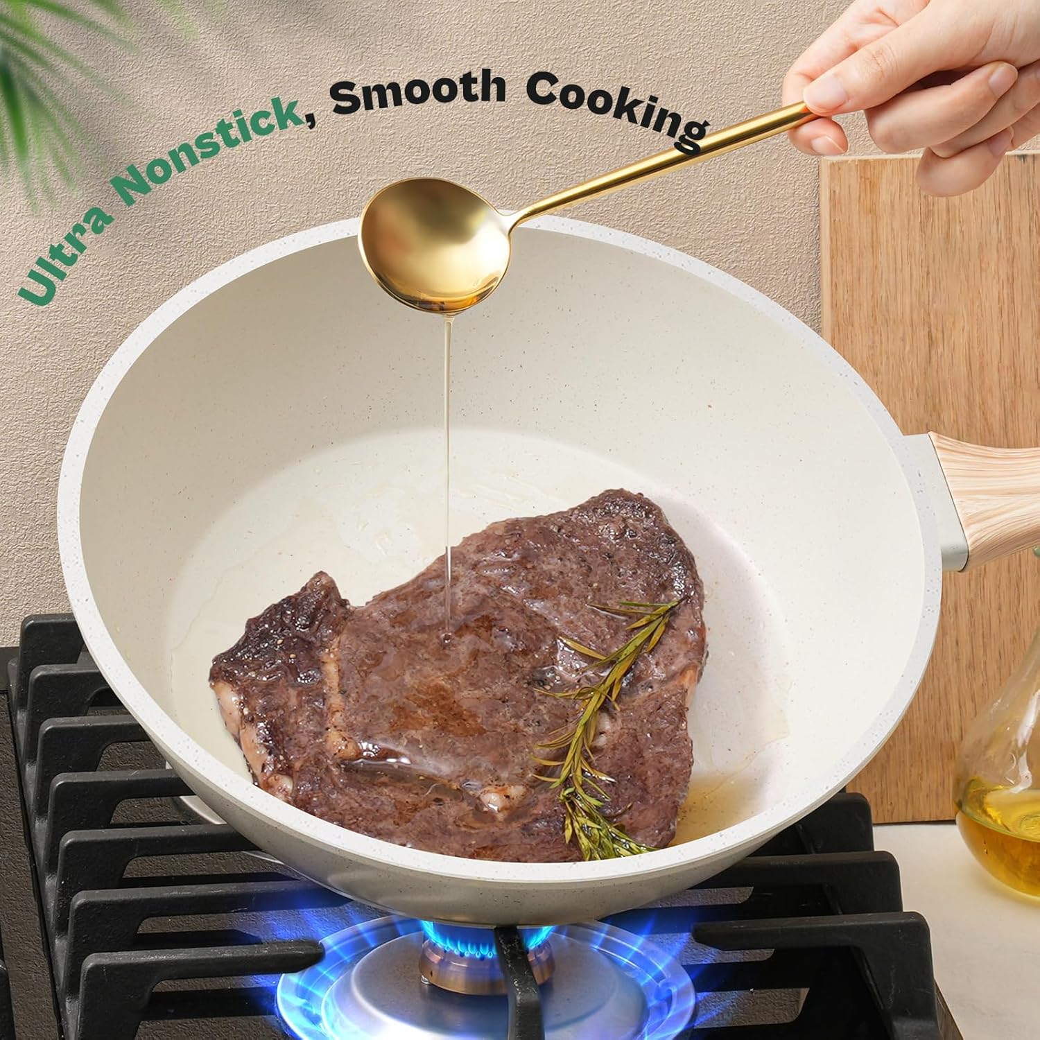 - Safe, Non-Toxic Cookware You Can Trust - Designed for healthier, worry-free cooking. Crafted with a durable granite non-stick coating free from harmful chemicals like PFOS, PFOA, lead, and cadmium, this pots and pans set ensures cooking healthy every meals.