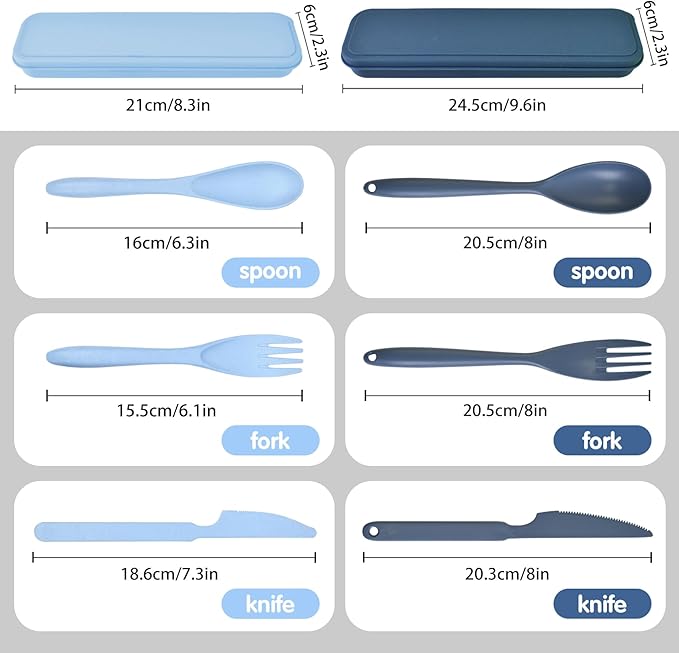 - 【Reusable Cutlery Set with Case】 Portable cutlery set is included one fork, one spoon, and one knife.The travel cutlery sets comes in two sizes, large and small, for kids and adults alike, making it a choice for family dinners.
