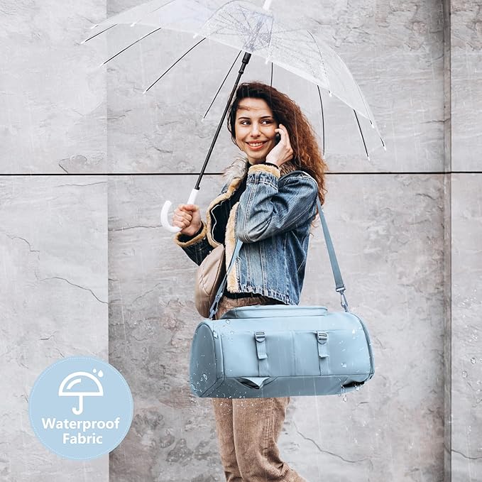 - Waterproof & Wrinkle-Resistant Fabric: Even in the rainy days, you do not have to worry about wetting this weekender overnight bag. This duffel bag's fabric is well performed in anti-wrinkle, even if the travel backpack is squeezed by other heavy items for one year, you will not find wrinkles when you use it again.