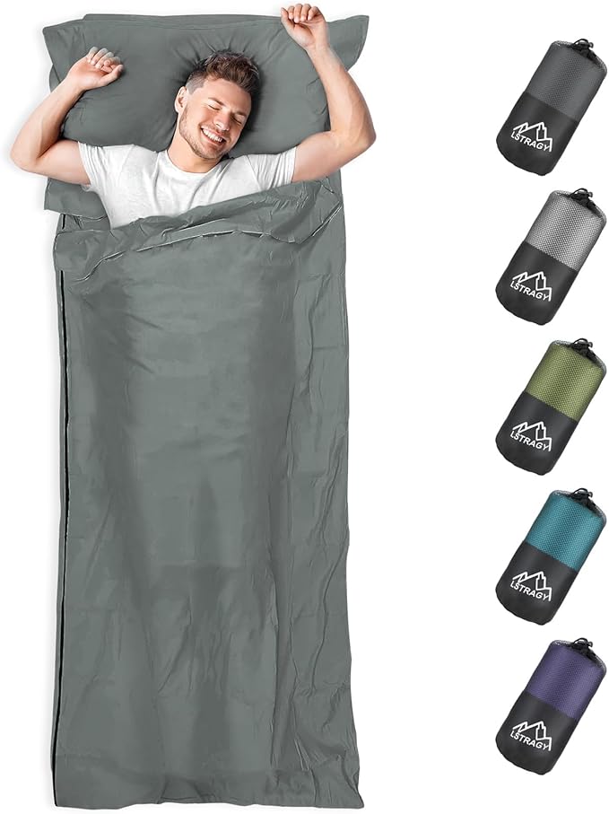- VERSATILE UTILIZATION: LSTRAGY sleeping bag liner serves multiple purposes, catering to both outdoor enthusiasts and travelers. It functions not only as an integral part of your sleep system during outdoor expeditions but also as a reliable gear for added warmth and protection during hostel stays, long bus rides, and plane journeys.