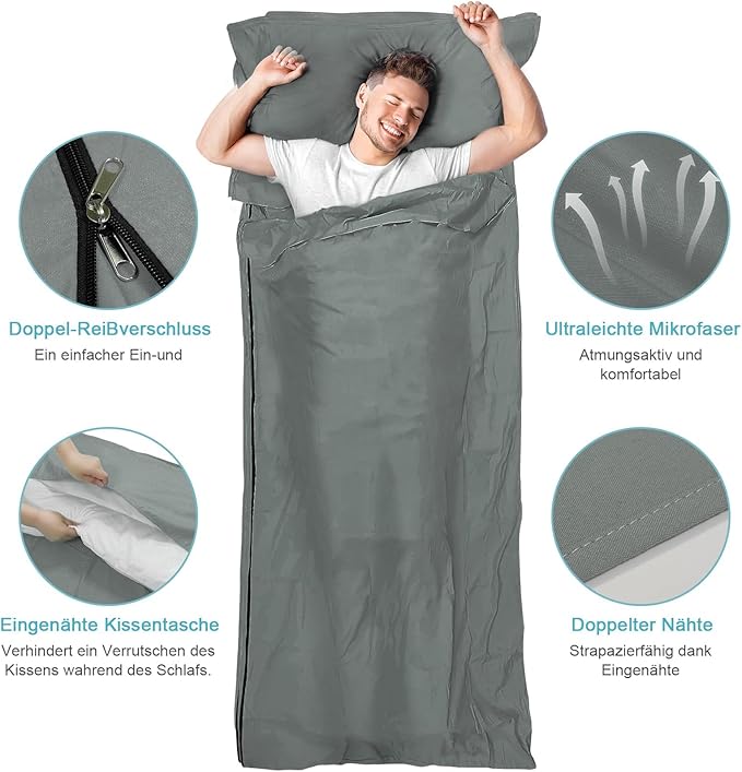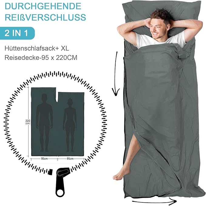 - PERFECTLY SIZED - Immerse yourself in comfort with our thoughtfully designed liner. Measuring an impressive 86.6 inches (220cm) in length and 37.4 inches (95cm) in width, it offers ample room for even taller individuals without excess material that would make you uncomfortable. To top it off, we’ve included a pillow pocket for added convenience. When traveling, slide in your own pillow for a more hygienic and comfortable slumber.