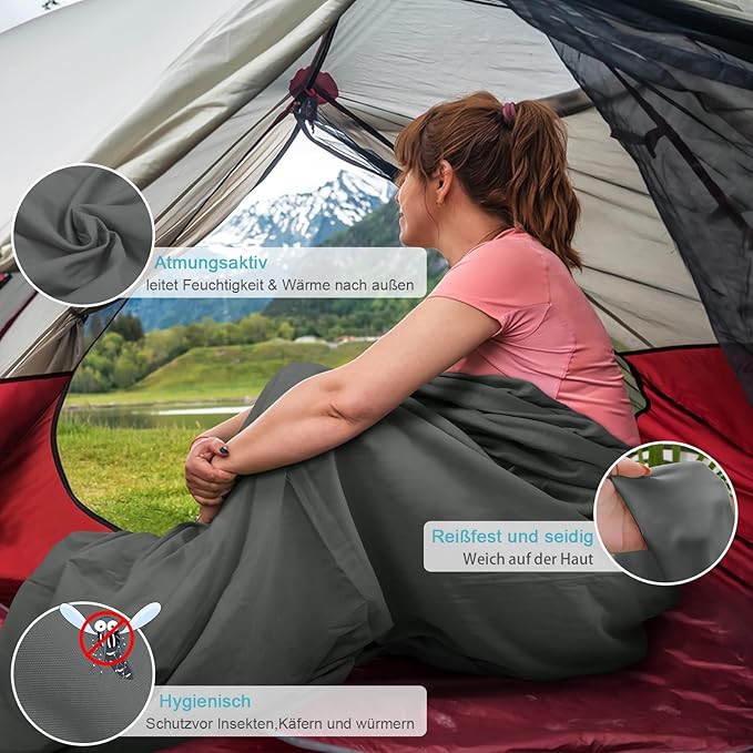 - SILKY-SOFT SENSATION - Bid adieu to rough hotel sheets and say hello to your new sleep companion, our XL sleeping bag liner! With its soft, lightweight, and breathable 100% Polyester material, this adult sleep sack is an essential camping gear that ensures you snooze comfortably on all your adventures.