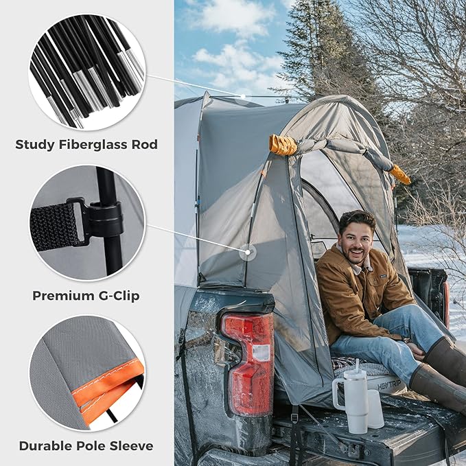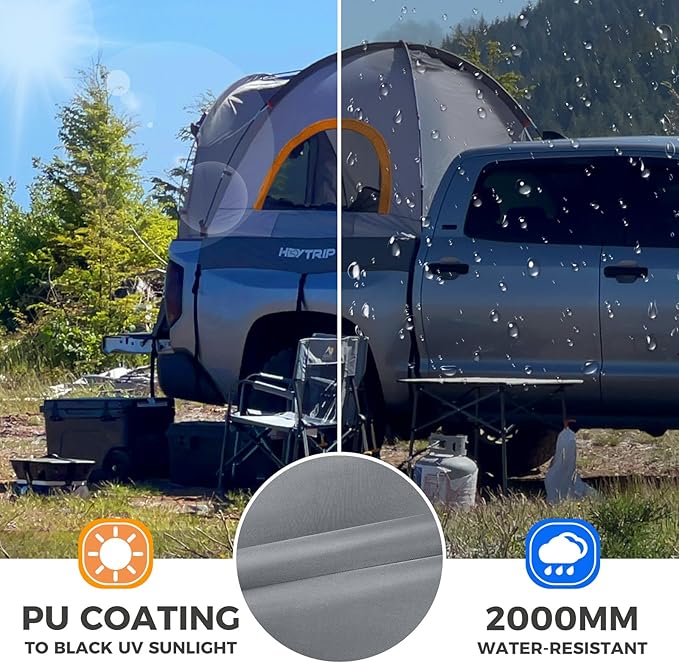 - Suitable For Pickup Truck:Transform your 5.0–6.8 ft pickup truck bed into a comfortable campsite with the HEYTRIP truck bed tent! This roomy pickup truck tent is perfect for camping and providing a cozy sleeping experience off the ground for two adults.