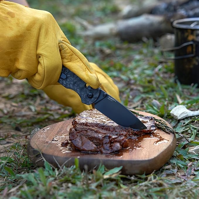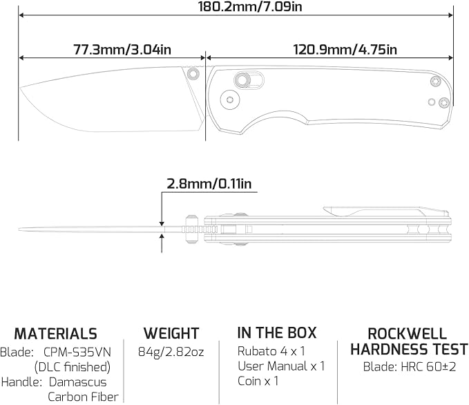 - 【CPM-S35VN Powder Steel Blade】Features a durable DLC (Diamond-Like Carbon coating) finish. A combination of durability, corrosion resistance, ease of maintenance, cutting performance, and aesthetic appeal.