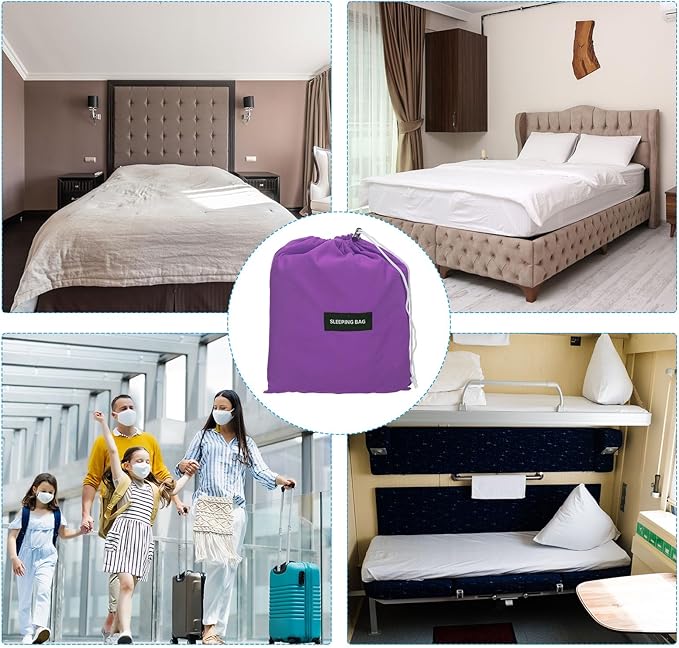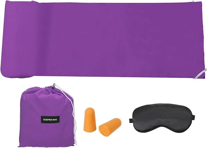 - Advantage: These travel sheets are made of ultra-fine polyester, soft, comfortable, colorfast, washable, breathable, and easily fold up and travel in carry bag.The integrated design of the pillow case blocks dirt. Snap buttons on both sides allow for easy entry and exit.With eye-mask and earplugs, can effectively block light and isolate external noise, helping you sleep comfortable