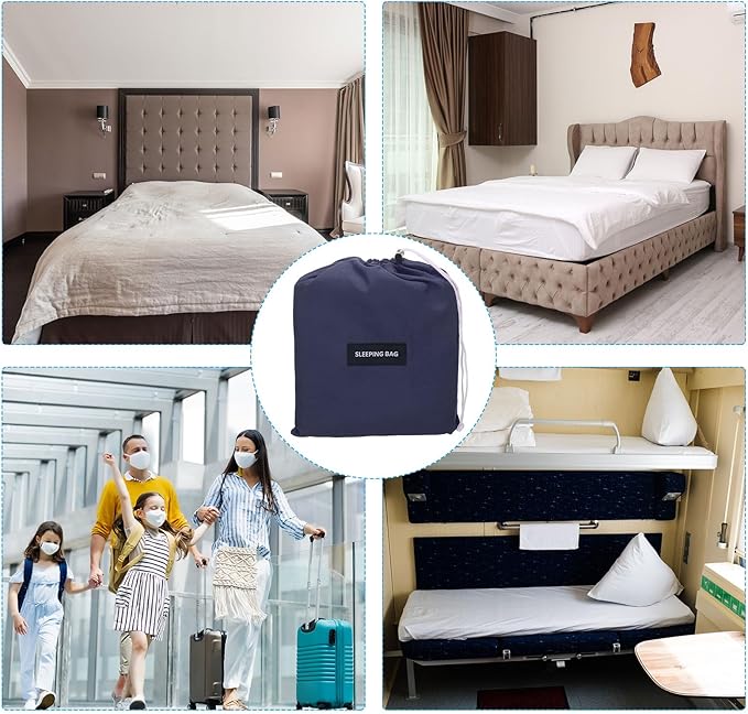 - Advantage: These travel sheets are made of ultra-fine polyester, soft, comfortable, colorfast, washable, breathable, and easily fold up and travel in carry bag.The integrated design of the pillow case blocks dirt. Snap buttons on both sides allow for easy entry and exit.With eye-mask and earplugs, can effectively block light and isolate external noise, helping you sleep comfortable