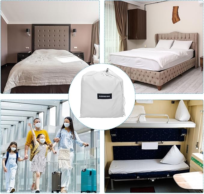 - Advantage: These travel sheets are made of ultra-fine polyester, soft, comfortable, colorfast, washable, breathable, and easily fold up and travel in carry bag.The integrated design of the pillow case blocks dirt. Snap buttons on both sides allow for easy entry and exit.With eye-mask and earplugs, can effectively block light and isolate external noise, helping you sleep comfortable
