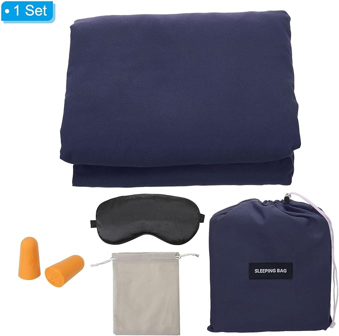 - Advantage: These travel sheets are made of ultra-fine polyester, soft, comfortable, colorfast, washable, breathable, and easily fold up and travel in carry bag.The integrated design of the pillow case blocks dirt. Snap buttons on both sides allow for easy entry and exit.With eye-mask and earplugs, can effectively block light and isolate external noise, helping you sleep comfortable