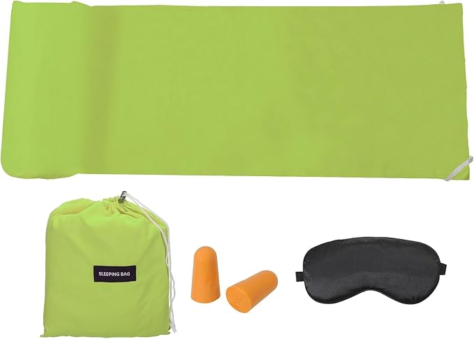 - Advantage: These travel sheets are made of ultra-fine polyester, soft, comfortable, colorfast, washable, breathable, and easily fold up and travel in carry bag.The integrated design of the pillow case blocks dirt. Snap buttons on both sides allow for easy entry and exit.With eye-mask and earplugs, can effectively block light and isolate external noise, helping you sleep comfortable