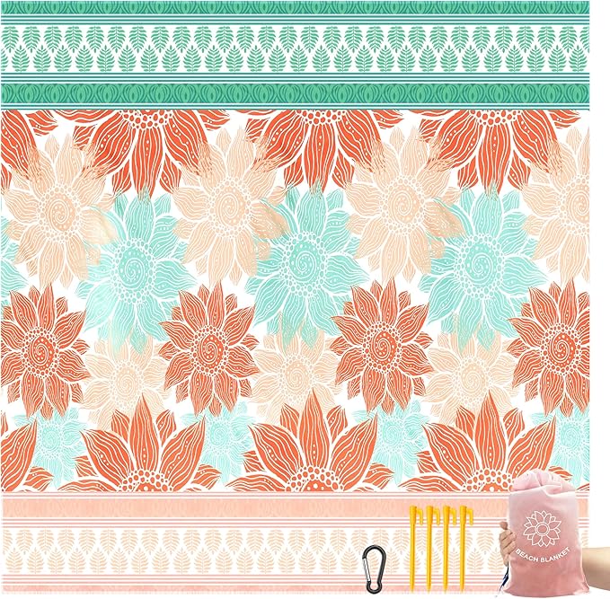 - 【Sand Proof】The beach mat comes with four incorporated pockets so you can put sand or rocks in these sand pockets to keep the blanket on ground or you can use the stakes to nail it down. You just need to shake the blanket to rights off sand from beach mat.