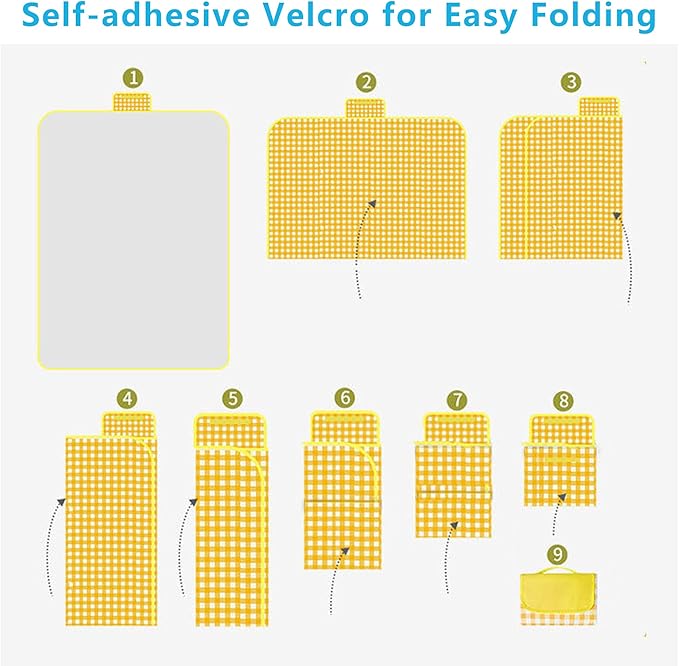 - 🏖️【Quality Materials】:Our picnic Blanket is made of high quality oxford fabric, non-toxic, odorless, lightweight and comfortable. Printed with yellow and white plaid, it looks great on the lawn.