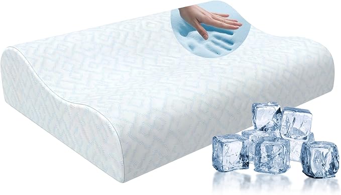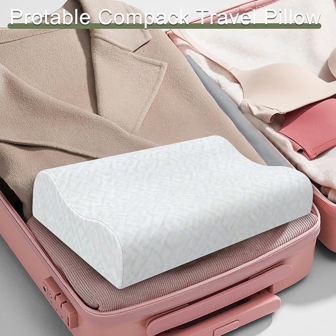 Cooling Gel Memory Foam Travel Pillow,Compressible Neck Contour Camping Pillow,Compact Supportive Pillow for Backpacking Hiking Gear & Accessories