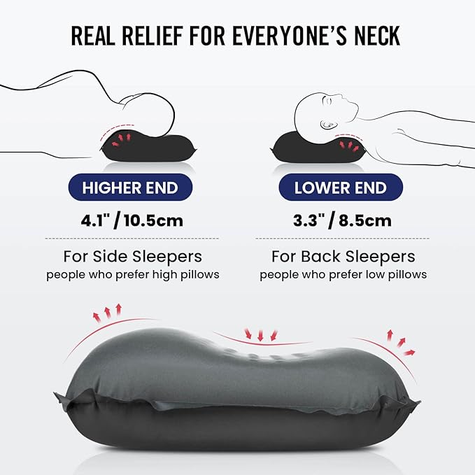- โ ๐๐๐ก๐-๐ ๐ซ๐๐ ๐๐จ๐ซ ๐๐๐๐ค ๐๐ง๐ ๐๐ข๐๐ ๐๐ฅ๐๐๐ฉ๐๐ซ๐ฌ โจ - Side sleepers usually need a thicker inflatable camping pillow for more support to spine, while back sleepers tend to prefer a blow up pillow of middle height. Taking both into consideration, we've designed our travel pillow with a lower and a higher end to provide varied support for everyone. Free your neck and wake up fresh from any sleeping position!